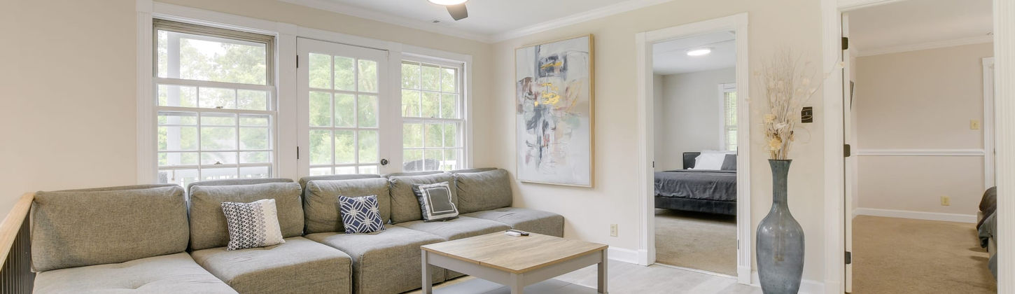 Escape to this luxurious 4-bedroom, 3-bathroom vacation rental in Durham. This elegant home offers fireplaces, heated floors, and multiple living areas for ultimate relaxation. Going out? Visit nearby attractions like the North Carolina Botanical Garden and the Museum of Life and Science. Return to the home in the evening and play a match of pool in the living room. Later, swim in the heated outdoor pool, watch the kids play soccer on the backyard’s turf, or roast s’mores around the fire pit!